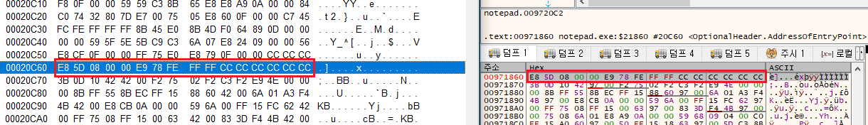 나는 Notepad.exe를 기준으로 직접 EntryPoint의 RAW를 찾아보도록 하였다.