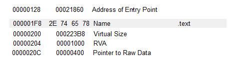 PointerToRawData는 파일에서의 해당 섹션이 어디에 배치되는지를 알려주는 값이다.