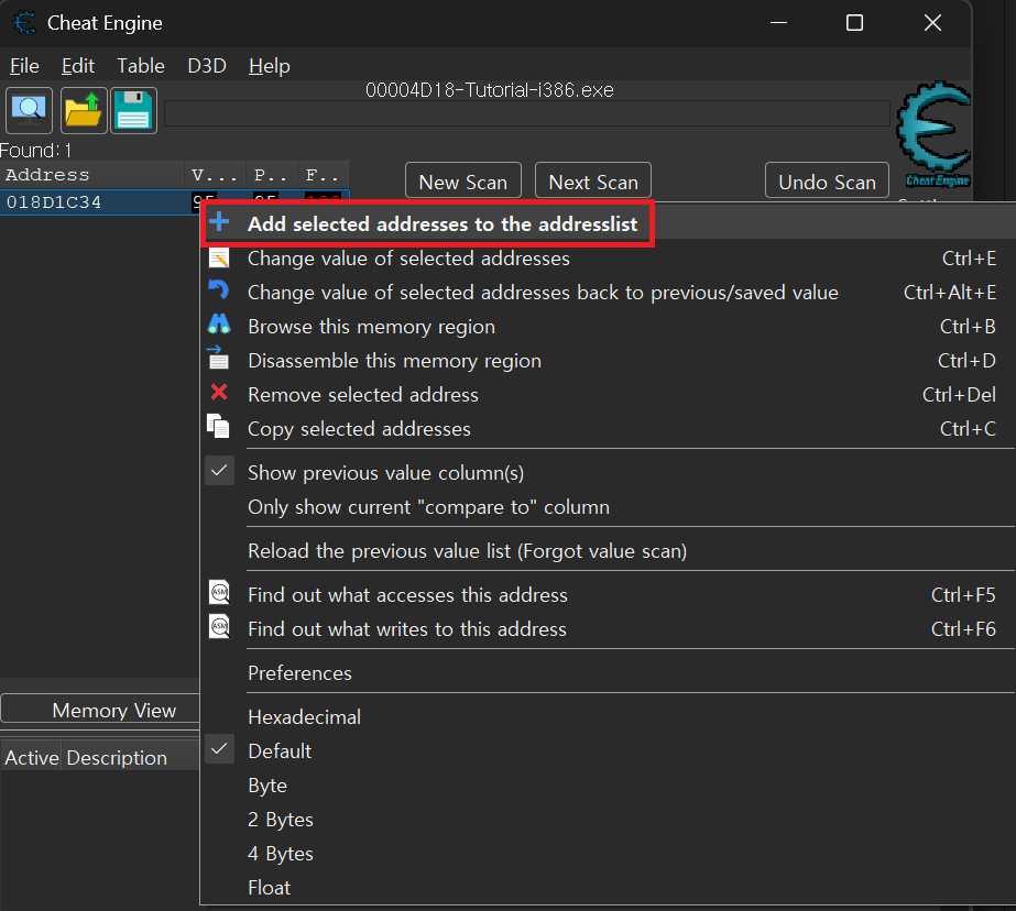 메모리 값이 어떤 방식으로 검색되고 좁혀지는지 직접 경험할 수 있는 기본 단계다.